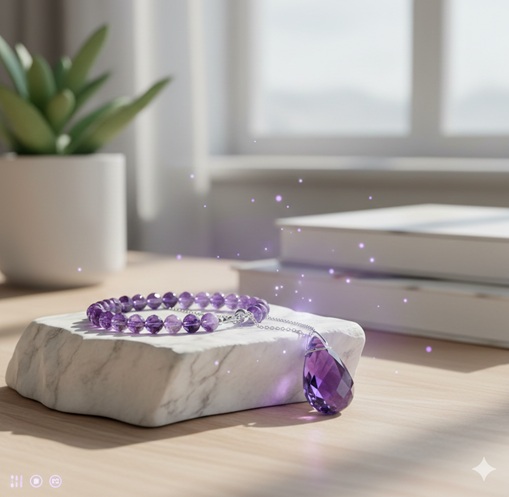 開發智慧與記憶 🧠:對應紫水晶眉心輪(第三眼),能激發靈感、清晰思考。對於學生或職場人士,配戴 紫水晶手串 能有效提升紫水晶記憶力。